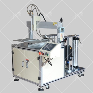 此款自动热熔胶机2,又称三轴自动点胶机、热熔胶自动上胶机、热熔胶自动涂胶机。